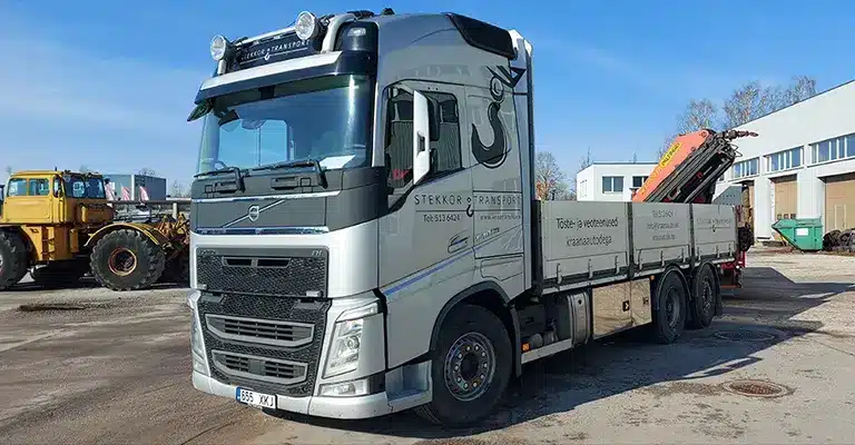 Volvo FH crane truck with Palfinger PK22002, 17m reach. Load box 6.3 x 2.45m, crane behind box. Trailer option. Professional service in Estonia.